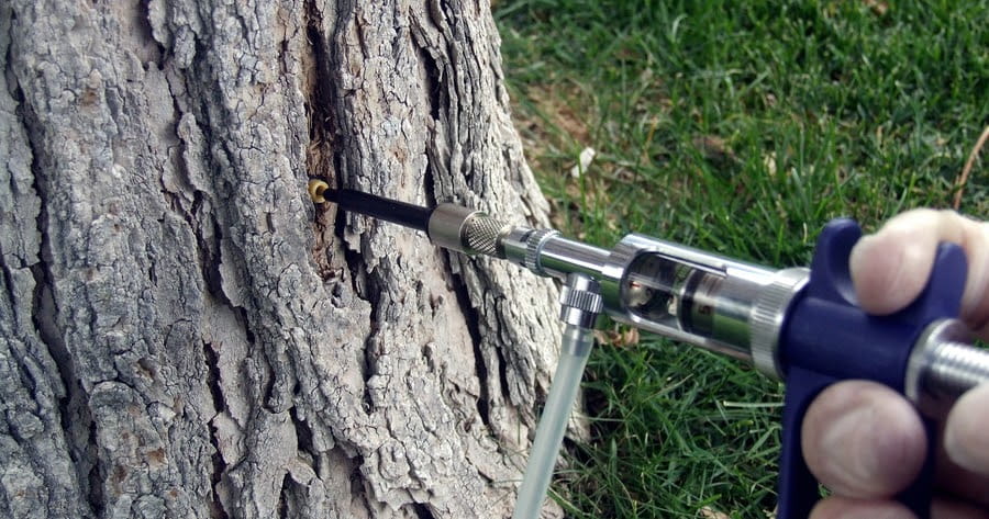 No obstante, utilizando tratamientos fitosanitarios aplicados mediante inyección son muy efectivos ante cualquier plaga, como por ejemplo, el Picudo Rojo de las palmeras, la Procesionaria del Pino, el pulgón en Almendros, Galeruca del Olmo, cochinilla en Perales, minador de cítricos en limoneros y naranjos, etc.