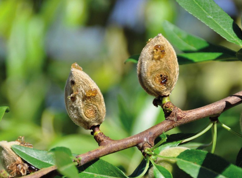 Se debe observar si en el árbol de almendro existe alguna masa vegetativa extraña. Cabe destacar que dicha masa vegetal es caracterizada por presentar una consistencia viscosa y algo pegajosa.